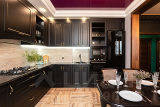 Функциональная кухня с варочной поверхностью, вместительным холодильником, чайником и набором хорошей посуды для приема и приготовления пищи, столовыми приборами и аксессуарами.