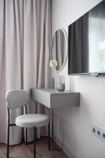 - кухня оснащена всей необходимой техникой: плитой, микроволновкой, кофемашиной и посудомоечной машиной — всё для лёгкого и быстрого приготовления еды;