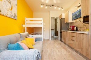 Yellow studio by the sea - апартаменты-студия в новом ЖК, в 10 минутах ходьбы от пляжа и центра г. Пионерский. Расстояние до железнодорожного вокзала г. Пионерский составляет 300 м, а до международного аэропорта Храброво 20к м. Расстояние до г. Калининград составляет 32 км.
