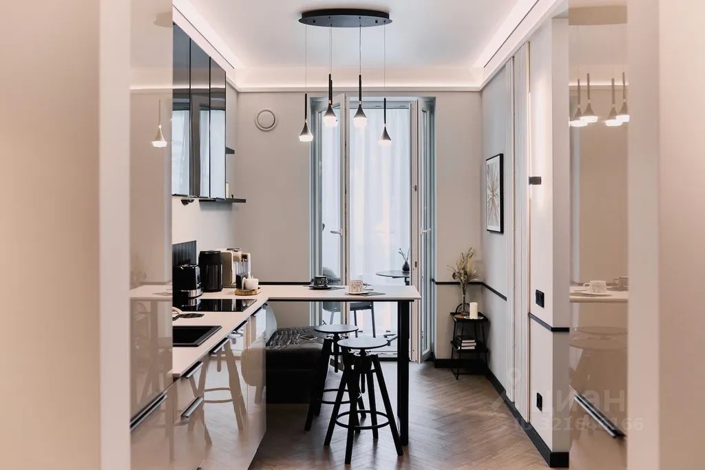 Несмотря на компактность, в квартире есть всё для комфортного проживания пары и возможность размещения третьего гостя. Каждая деталь создает атмосферу заботы: удобная кровать с постельным бельём из шелковистого сатина, полноценная кухня с качественной техникой, ванная комната с особой атмосферой расслабления.