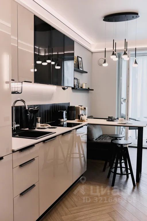Интерьер и атмосфера квартиры как контрапункт истории чёрно-бежевая палитра на фоне древних стен.