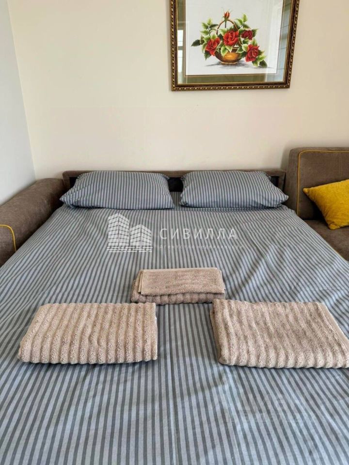 В гостиной стоит диван, который раскладывается в полноценную двуспальную кровать по принципу "раскладушка" с полноценным матрасом, в кухне - раскладной диванчик (дополнительное спальное место), по запросу можем предоставить детскую кроватку.