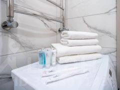 Гостям бесплатно предоставляется постельное белье белое страйп-сатин класса LUX, полотенца, чай, кофе, необходимые продукты (сахар, соль, растительное масло, кофе), зубная щетка, бритва, вся необходимая косметика (гель для душа, шампунь, кондиционер для волос, лосьон для тела, косметический набор), халаты, тапки.