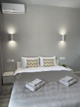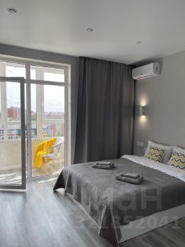 В студии есть вся необходимая мебель как в комнате, так и на кухне. Для вашего комфорта установлена техника: кондиционер, холодильник, телевизор и стиральная машина. Санузел совмещенный, есть ванна. Из окон открывается вид на улицу, также имеется балкон для утреннего кофе или вечернего отдыха.