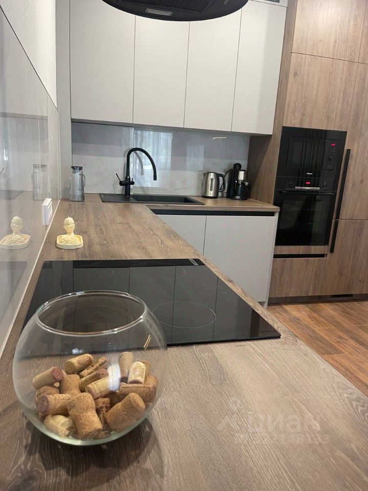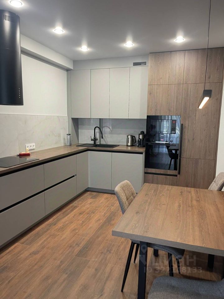 Квартира оформлена в современных стильных тонах, создающих атмосферу уюта и гармонии. Просторная кухня-гостиная оборудована: