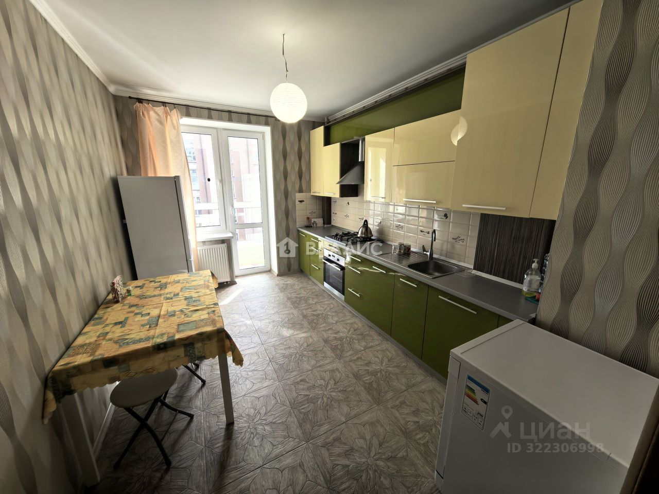 Общая площадь квартиры составляет 45 кв. м, из которых 20 кв. м — жилая площадь, 18 кв. м — кухня. Высота потолков 2,7 м создаёт ощущение простора. Благодаря евроремонту и удачной планировке пространство используется максимально эффективно.