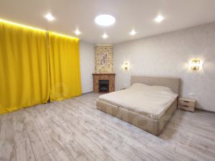 Размещение гостей: в комнате большая кровать 180*200 с огромным телевизором. В кухне-гостиной угловой раскладной диван 160*200.