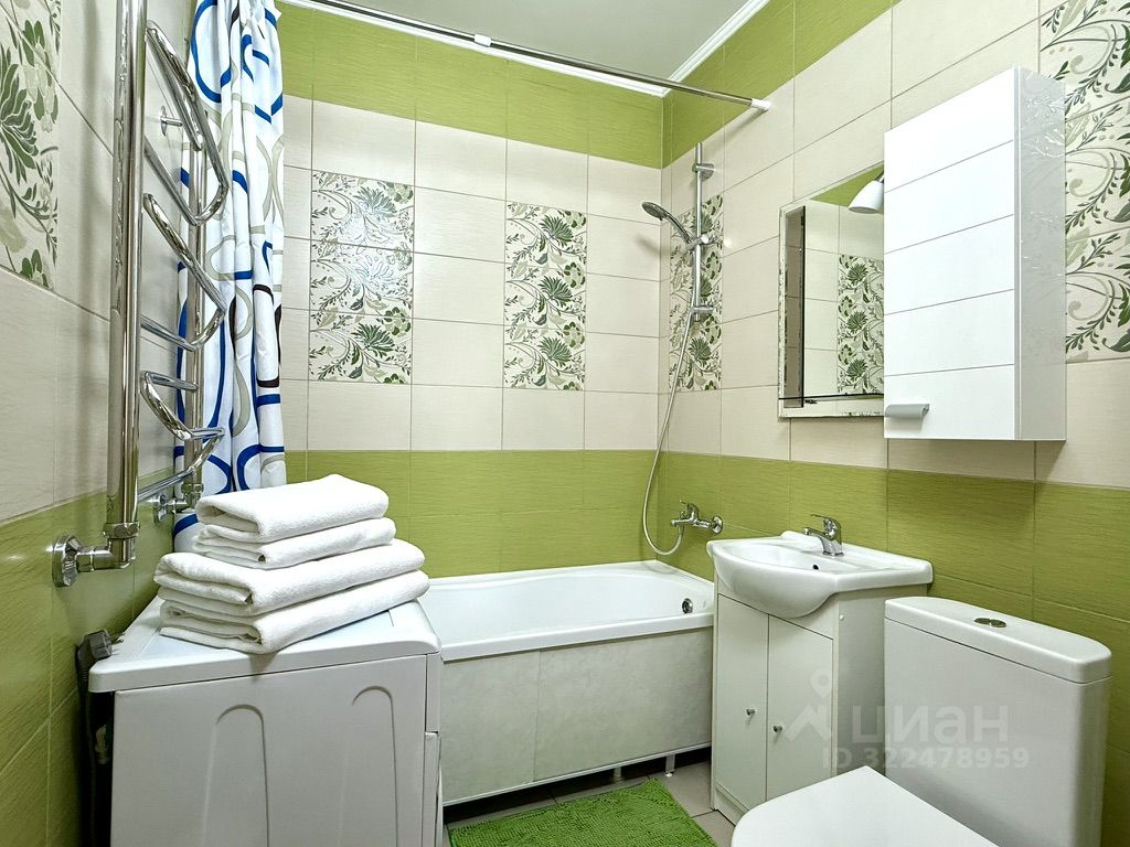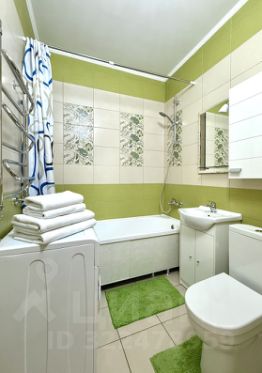 Совмещенный санузел с ванной и стиральной машиной. Все необходимые принадлежности, а так же шампунь, гель для душа, стиральный порошок предусмотрены. Комплекты махровых полотенец каждому гостю.