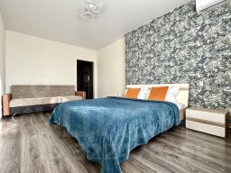 В спальне кровать с ортопедическим матрасом и диван-кровать.