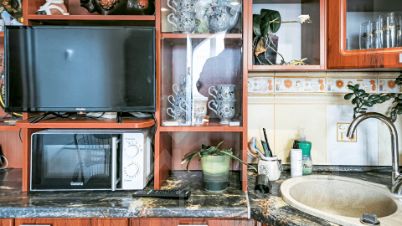 Современная обстановка: новая мебель, полный комплект бытовой техники (стиральная машина, посудомоечная машина, телевизор, плита, микроволновка, холодильник).