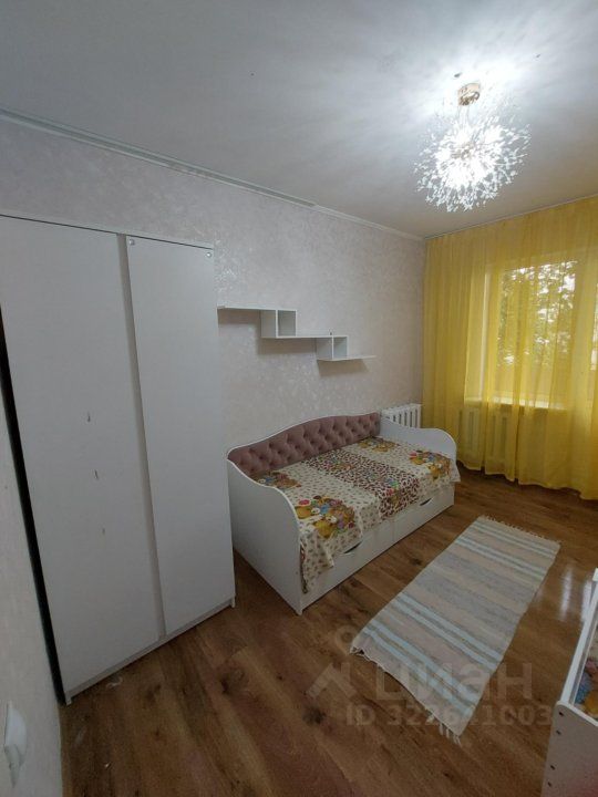 В комнате есть две детские кровати, выдерживающие вес до 119 кг, шкаф, комод и настенные полки. В зале — шкаф, комод, стеллаж и большая кровать размером 200x140 см.