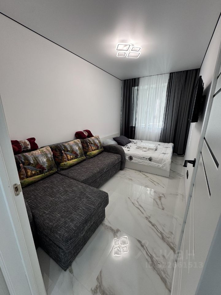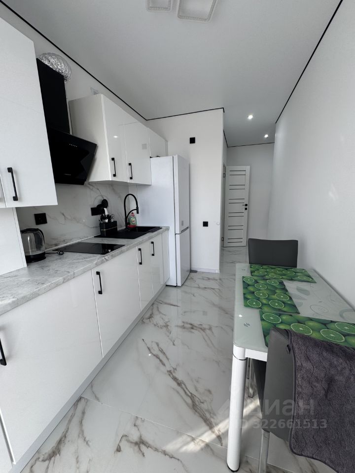 В квартире выполнен евроремонт, что придаёт ей современный и стильный вид. В комнате и на кухне есть вся необходимая мебель, чтобы вы могли сразу же заехать и начать жить. К вашим услугам холодильник, телевизор и стиральная машина. Санузел совмещённый и оборудован душевой кабиной. Также имеется балкон, где можно наслаждаться свежим воздухом.