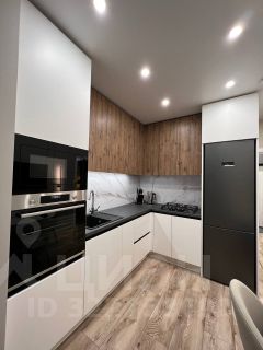 • Кухня для жизни: большой холодильник, духовка, плита, микроволновка, вытяжка; стол на четверых, вечера как в ресторане, только дома.