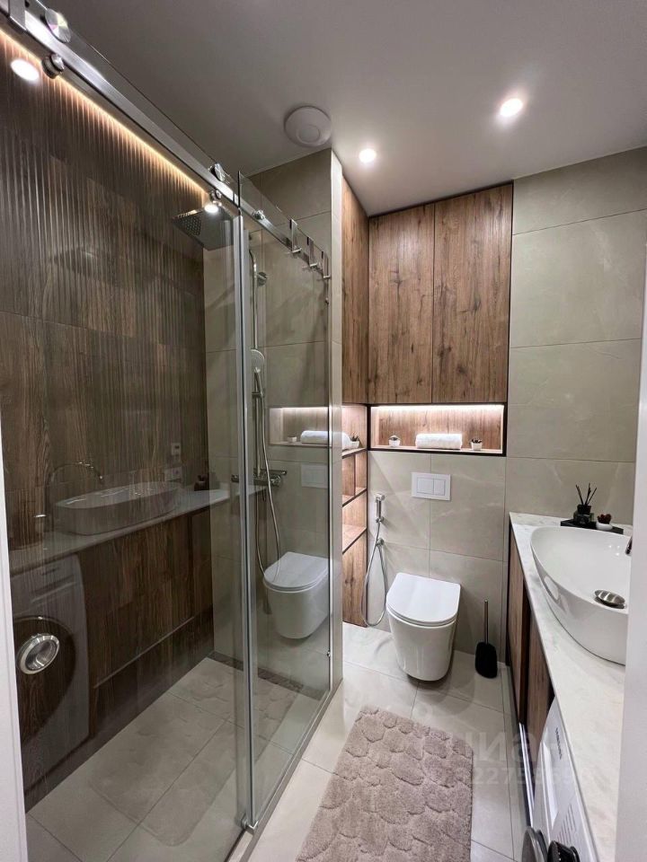 • Ванная с душем на двоих, подвесной унитаз, биде, стиралка с сушкой, удобно и современно.