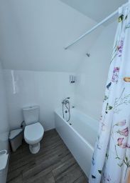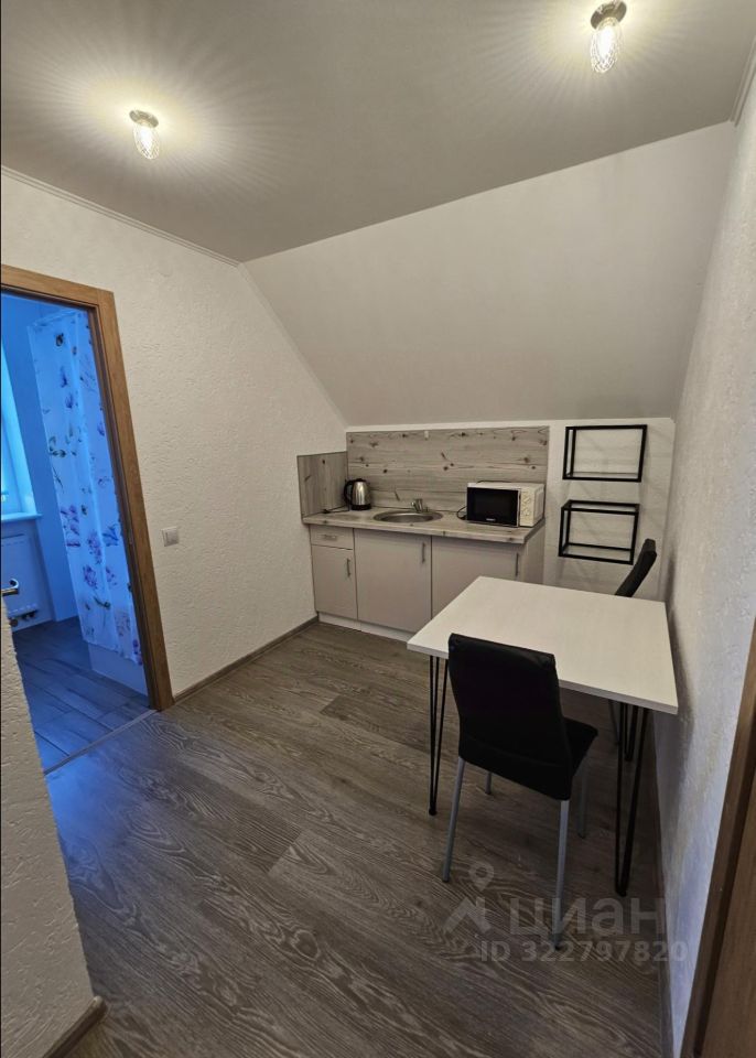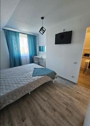 Студия с оборудованным санузлом. Подойдет для размещения 2 человек. Большая двуспальная кровать. Оснащение: чайник, микроволновая печь, холодильник, фен, телевизор.