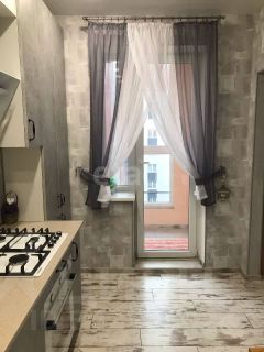 Кухня площадью 9 квадратных метров хорошо укомплектована: есть духовой шкаф, плита с покрытием, микроволновая печь и все необходимое для приготовления пищи. В жилой комнате располагается шкаф, раскладной диван, комод и телевизор с кабельным ТВ. Также имеется доступ к интернету и домофон для вашей безопасности.