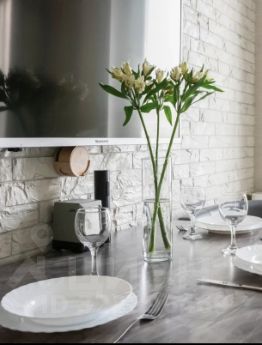 - Кухня-столовая оснащена большим холодильником с морозильной камерой, духовкой, индукционной плитой, микроволновкой, посудомоечной машиной, телевизором, роботом-пылесосом, проточным фильтром воды, чайником и кофемашиной, а также всей необходимой посудой и кухонными принадлежностями.