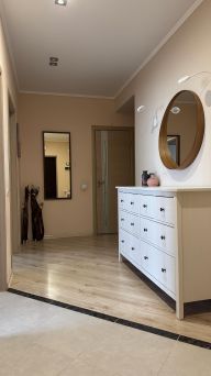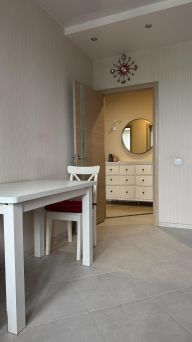 Дом, в котором находится квартира, оборудован пассажирским лифтом и наземной парковкой, поэтому можно не беспокоиться о месте для машины. Здание находится в отличном состоянии, так как было построено относительно недавно.