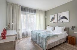 Комфортные двухкомнатные апартаменты из спальни с одной большой или двумя раздельными одноместными кроватями и гостиной с раздвижным диваном. Полностью оборудованная мини-кухня, посудомоечная, стиральная машина, микроволновая печь. Индивидуальное кондиционирование. Панорамные окна на лес. Апартаменты имеют просторную террасу с видом на лес общую с соседними номерами.