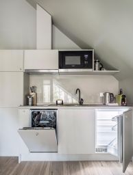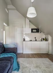 В доме четверо комфортных и стильных семейных апартаментов. Каждый состоит из гостиной с мини-кухней и спальни. Апартаменты оснащены всем необходимым для комфортного проживания на протяжении любого количества времени: стиральной и посудомоечной машинами, микроволновой печью, плитой, набором посуды. Все апартаменты имеют индивидуальное кондиционирование. Всю территорию гостевого дома покрывает высокоскоростной беспроводной интернет. На втором этаже гостевого дома расположена открытая терраса для отдыха.