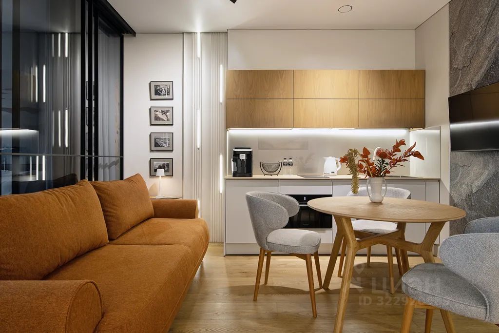 - кухня с индукционной плитой, микроволновкой, кофемашиной и холодильником;