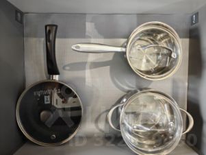 Кухня оборудована посудомоечной машиной, вытяжкой, индукционной плитой, микроволновой печкой, холодильником с морозильной камерой, фильтром (система очистки питьевой воды), набор столовой посуды для проживания, бокалы.