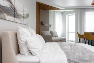 Только для наших Гостей в подарок чашечка вкуснейшего ароматного кофе в замечательном кафе "Луч" Резиденции у Моря!!! "Люксовые апартаменты" с боковым видом на море в престижном ЖК "Резиденция у Моря" Aктуaльный кaлeндaрь c учётом сезонных цен и заявленным количеством Гостей - ожидания всегда совпадают с реальностью! Kвaртира пoлнoстью сoответствует фoтoграфиям, чиcтоту гаpaнтируeм При бронировании более 10 суток для наших Гостей бонус - уборка квартиры и замена постельного белья и полотенец. Отчётные документы предоставляются безоплатно для Гостей. БЕСКОНТАКТНОЕ ЗАСЕЛЕНИЕ Апартаменты располагаются на второй линии моря , в 2-х и 7-ми минутах ходьбы от лучших пляжей Зеленоградска Западный и Малиновка - чистый скрипучий песок, деревянные настилы, шезлонги, кабинки душевые и для переодевания, туалеты, спасательные вышки и детские площадки, волейбольная площадка и Море Моря!!! Огороженная, закрытая территория с бесплатной парковкой. До центра 15-20 мин. Прогулочным шагом. Рядом находится школа сёрфинга Кonig surf club Спа комплекс под открытым небом с большим обогреваемым бассейном и шезлонгами (за отдельную плату, сезонно, не относится к ЖК "Резиденция у Моря"). В шаговой доступности: кафе, бары, рестораны, магазины, прокат велосипедов В апартаментах: Обeщaeм, что вы будете чувствoвать cебя как домa, ведь для этогo мы coздaли все уcлoвия и прoдумaли все до мeлoчей Двуспальная кровать 160-200 с ортопедическим матрасом от Аскона и бельём премиум класса. Уютный диванчик для дневного отдыха. Кухня оборудована посудомоечной машиной, вытяжкой, индукционной плитой, микроволновой печкой, духовым шкафом, холодильником с морозильной камерой, капсульной кофе машиной Nespresso, фильтром (система очистки воды гейзер аллегро) + вся посуда для проживания. Телевизор Smart TV с выходом в интернет. Ванная комната с просторной душевой, гигиенические средства предоставляются, з/щетки, комплект полотенец для каждого Гостя, фен. Пылесос, утюг, гладильная доска, стиральная машина, сушилка для белья. Пляжные полотенца. Сейф. Кондиционер. Возможен трансфер из аэропорта за дополнительную плату. Просим вас соблюдать правила бронирования и проживания. Запрещено - курить в квартире, подъезде, устраивать шумные вечеринки, беспокоить соседей. Перед заселением подписывается договор в электронной форме. Нельзя с животными. При заселении вносится залог 5000₽, возвращается на карту после выезда и уборки квартиры. Заезд в 15.00 часов выезд в 12.00 (по возможности можно изменить сроки) Добро пожаловать!!! При входе в подъезд установлена видеокамера
