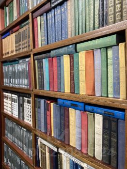 Три комнаты: спальня с двуспальной кроватью, библиотека с раскладным диваном, гостиная с диваном и большим окном.
