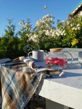 Имеются две изолированные комнаты, кухня, санузел. Квартира меблирована и оснащена техникой: холодильник, стиральная машина, плита, телевизор, Wi-Fi. Из окон открывается вид на закат. Во дворе оборудован палисадник с зоной отдыха и грилем.