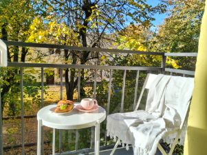 В первой комнате двуспальная кровать 160х200 см. и односпальное кресло-кровать. Во второй комнате односпальная кровать 90х200 см. и двуспальный диван. Таким образом в квартире может проживать 6 человек. Окна выходят в тихий двор, парковочные места есть всегда.