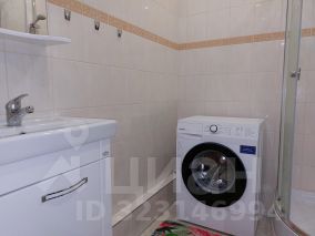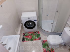 В санузле: душевая кабина со смесителем и душем, тумба со встроенной раковиной и смесителем, полотенцесушитель, зеркало настенное с полкой, унитаз с гигиеническим душем, стиральная машина-автомат на 6 кг загрузки;