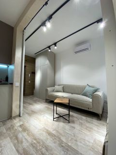 Сдаётся уютная однокомнатная квартира с дизайнерским ремонтом, расположенная по адресу Россия, Калининградская область, Светлогорск, Молодёжная улица, 17. Общая площадь квартиры составляет 25 кв. м, жилая площадь — 16 кв. м, кухня — 5 кв. м. Квартира находится на 1 этаже 7-этажного дома, построенного в 2023 году. Высота потолков — 2.7 метра. Окна выходят на улицу, поэтому в квартире всегда светло. Интерьер квартиры выполнен в современном стиле, что создает комфортную атмосферу для жизни. В комнате и на кухне есть вся необходимая мебель. В квартире установлены кондиционер, холодильник, телевизор и стиральная машина. Санузел совмещённый, что удобно для ежедневного использования. Дом новый, с наземной парковкой и пассажирским лифтом. Благодаря этому, можно легко добраться до квартиры даже с тяжёлыми сумками. В доме проведён интернет, а значит, можно без проблем работать и отдыхать онлайн. Квартира расположена в районе с развитой инфраструктурой. В пешей доступности находятся магазины, где можно приобрести всё необходимое. Рядом с домом есть удобные транспортные развязки, что позволяет без труда добраться до любой части города. Условия аренды: договор заключается напрямую с собственником. Дополнительных обременений нет, комиссия отсутствует. Залог и предоплата обсуждаются индивидуально. Квартира идеально подойдёт для проживания одного человека или пары. Приглашаем вас на просмотр! Записывайтесь, чтобы лично оценить все преимущества этой квартиры.