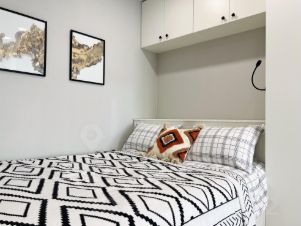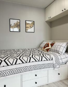 Кровать 160200 см с анатомическим матрасом, подушками премиум-класса и шторами Blackout — гарантия крепкого сна.