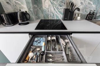 Наша квартира с современным дизайном и просторной планировкой (45 м²) обеспечат вам комфортный отдых. Просторная комната поделена на две зоны. Зона сна с двуспальной кроватью с ортопедическим матрасом 180х200 отделена раздвижной современной перегородкой. Зона гостиной имеет современный диван и телевизор, поддерживающий каналы Smart TV. Квартира включает всё необходимое для вашего удобства: постельное бельё, полотенца, моющие средства, тапочки, а также пляжные коврики для отдыха в летнее время. В квартире есть стиральная машина, посудомоечная машина, гладильная доска, утюг и фен. Кухня оснащена всей необходимой посудой и техникой.