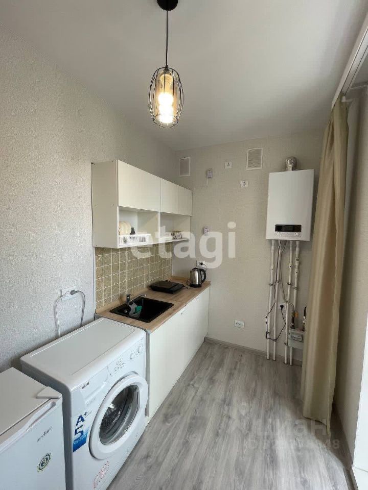 - Кухня: Современный встроенный гарнитур, электрическая варочная плита, холодильник, микроволновая печь и стиральная машина. С кухни есть выход на балкон с видом во двор.