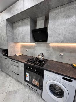 Полная меблировка и вся необходимая техника: холодильник, духовой шкаф, стиральная машина, микроволновая печь.
