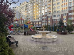 Благоустроенный двор с закрытой территорией с большой детской площадкой, фонтаном и общественной парковкой.