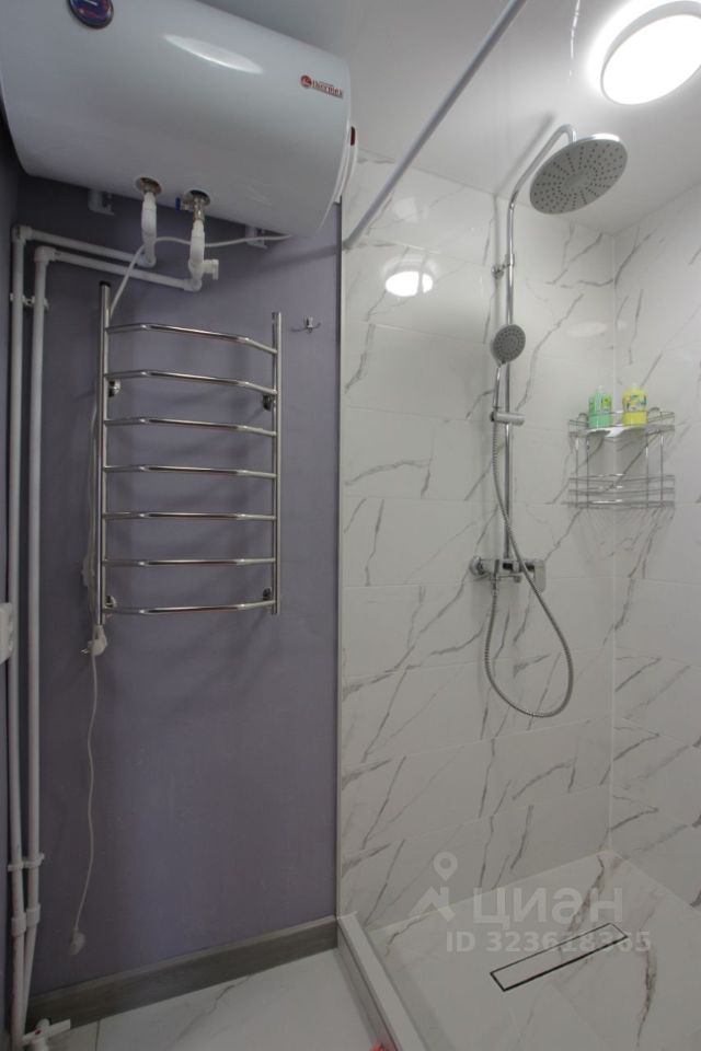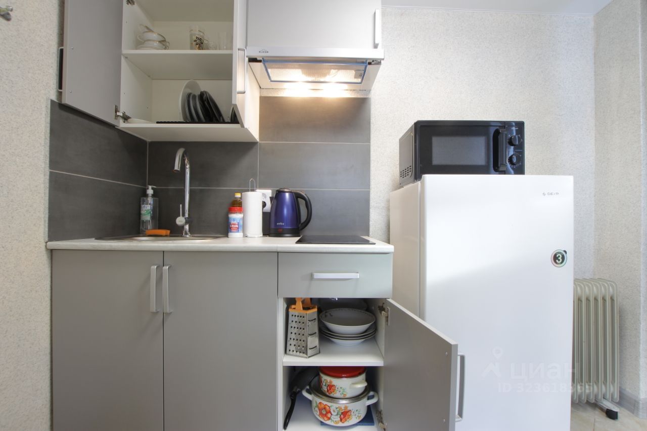 В квартире сделан косметический ремонт, поэтому она выглядит свежо и ухоженно. В комнатах и на кухне есть вся необходимая мебель. Из техники — кондиционер, холодильник, телевизор, плита, вытяжка и стиральная машина. В ванной комнате установлена душевая кабина. Компактная кухня площадью 5 кв. м прекрасно подходит для приготовления еды.
