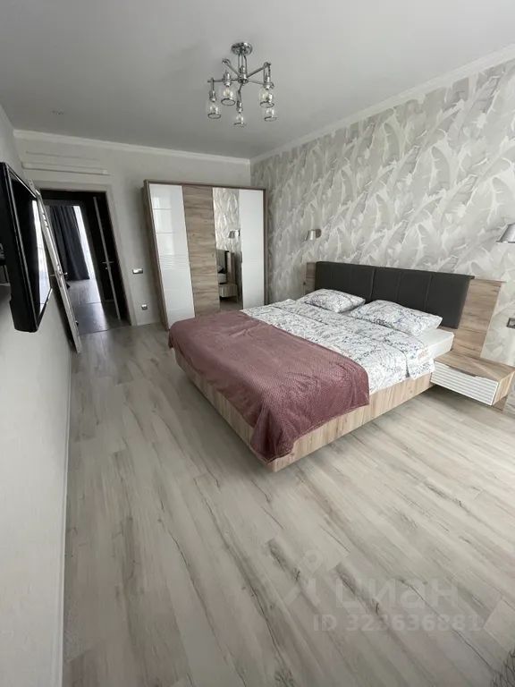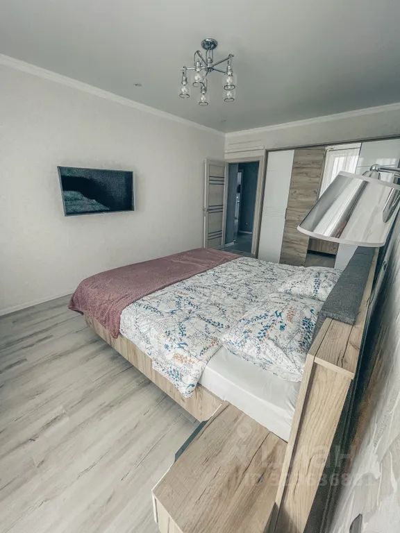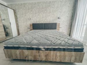 В спальне — двуспальная кровать с ортопедическим семизональным матрасом и натуральным постельным бельём.