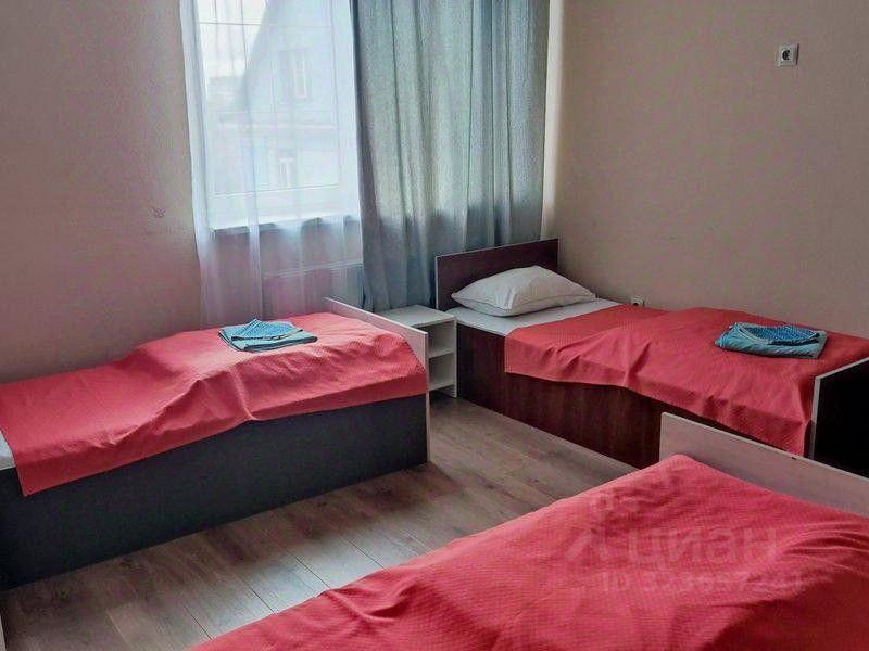 Кровать в женском номере. Номер площадью 25 кв.м. В номере четыре односпальные кровати, стол, стулья, постельное белье и полотенца, шкаф, зеркало. Ванная комната на номер.