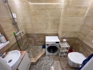 В квартире есть современная мебель как в комнате, так и на кухне, а также вся необходимая техника: холодильник, телевизор и стиральная машина. Просторная ванная комната с душевой кабиной. Благодаря продуманной планировке, жилая площадь составляет 16 кв. м, а кухня занимает 7 кв. м, что позволяет удобно расположиться и готовить с удовольствием.