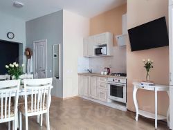 ? Эта просторная светлая однокомнатная квартира с большой двухспальной кроватью и удобным раскладным диваном идеально подойдет для проживания четверых гостей. ??