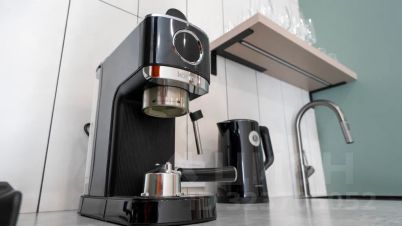 Полностью оборудованная кухня: посудомоечная машина, плита, микроволновая печь, холодильник, кофемашина, чайник, полный набор посуды.