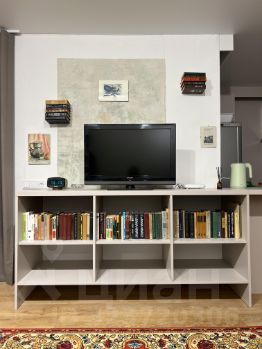 В квартире есть вся необходимая техника: стиральная машинка, посудомойка, холодильник, индукционная плита, духовой шкаф, вытяжка, электрический чайник, пылесос и телевизор.