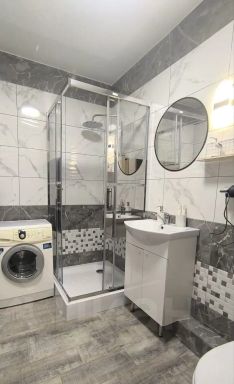 Квартира оборудована необходимым для проживания 2 гостей. В квартире есть утюг, гладильная доска, пылесос, фен, а также сушилка для белья. Для удобства гостей предусмотрены шторы блэкаут. Кухня оснащена необходимым: посуда, чайник, микроволновая печь и холодильник. На балконе есть зона отдыха, а также рабочее место с письменным столом. Работает Wi-Fi.