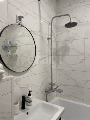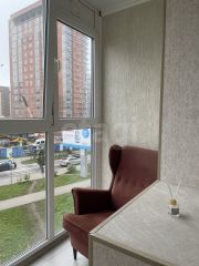 В квартире есть всё необходимое для проживания: мягкий диван, большой шкаф-купе, кухонные стол и стулья, а также вся бытовая техника: холодильник, стиральная машинка, микроволновая и духовая печь, телевизор.