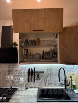 Функциональная кухня с варочной поверхностью, вместительным холодильником, посудомоечной машиной,чайником и набором хорошей посуды для приема и приготовления пищи, столовыми приборами и аксессуарами.