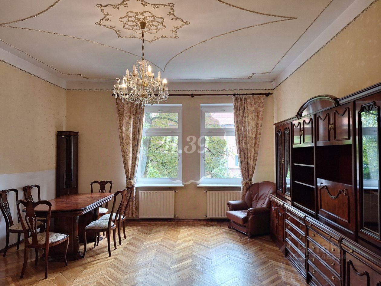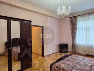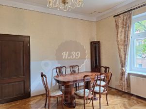 Высокие потолки и большие окна наполняют пространство светом и воздухом, а подлинный паркет подчеркивает статусность жилья.