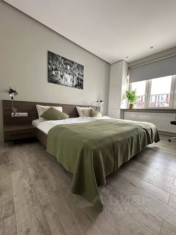 В спальне располагается кровать 200*200 см, телевизор со Смарт-ТВ, кондиционер, просторный шкаф, а также рабочее место с отличным видом!