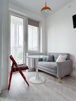 Лоджия с панорамными окнами добавляет ощущение пространства и позволит скоротать вечер за чашечкой кофе и книгой на удобных стульях.